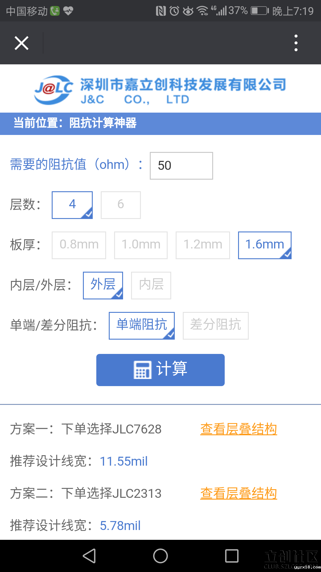 “阻抗神器”界面展示出来了:原来如此简单,阻抗输入:50,计算结果如下: