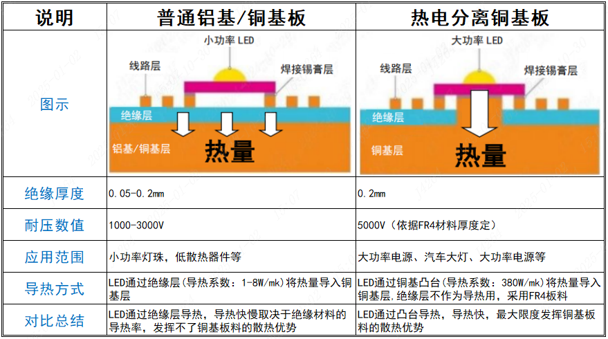 3、“热电分离铜基板”与普通铝基板、铜基板的区别在哪里?