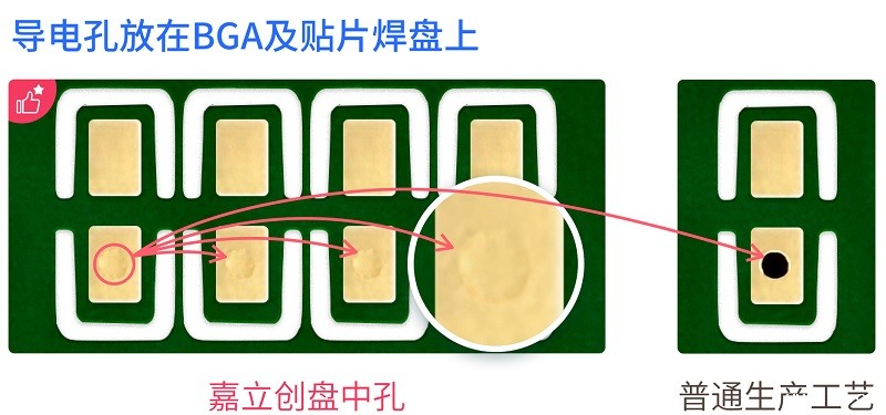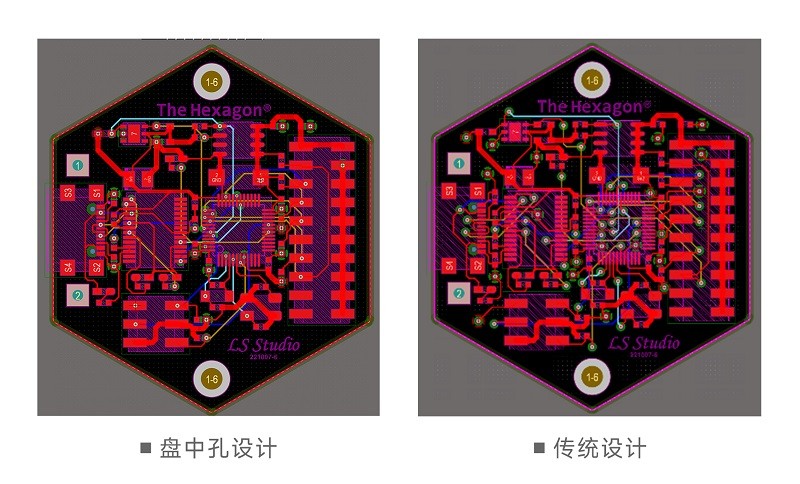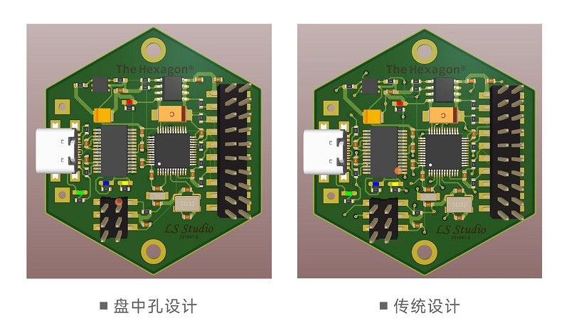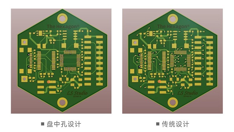 盘中孔设计的PCB在焊接元器件后,板上有部分孔或全部孔看不到,效果更加惊艳。