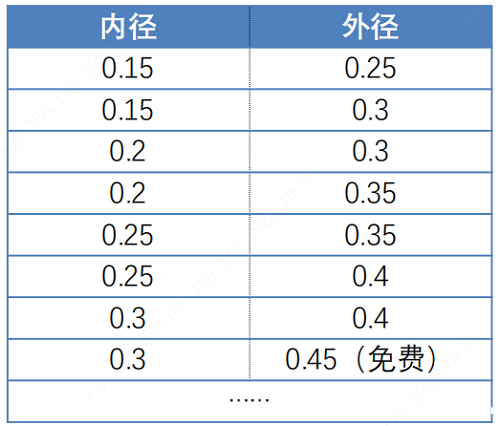 常规孔:内径0.3,外径0.45,这是常规组合,不收费。