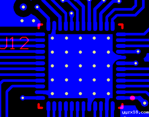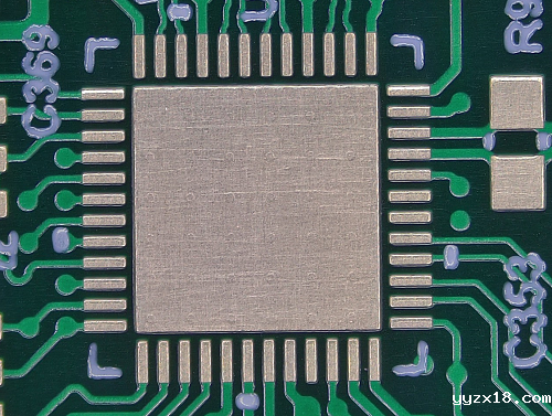 如图所示,在IC的散热下面打了这么多孔,出现的空洞大大减少了IC与PCB散热的接触面积,严重影响IC的散热效果,从而影响电子产品的性能。可以说,传统生产最大的缺点就是孔生产出来,出现孔有洞的问题。