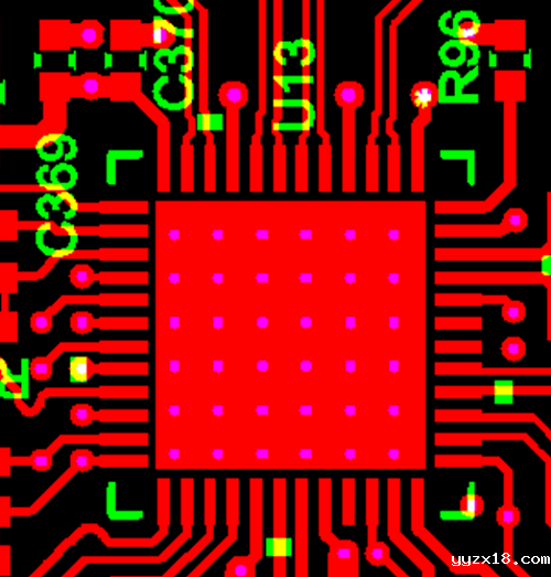 设计工程师对于需要散热的IC设计一般采用如下案例一:在IC散热接触面的PCB板上设计一个大面积的焊盘,在焊盘上打N个过孔,过孔连接正反面起到散热作用。