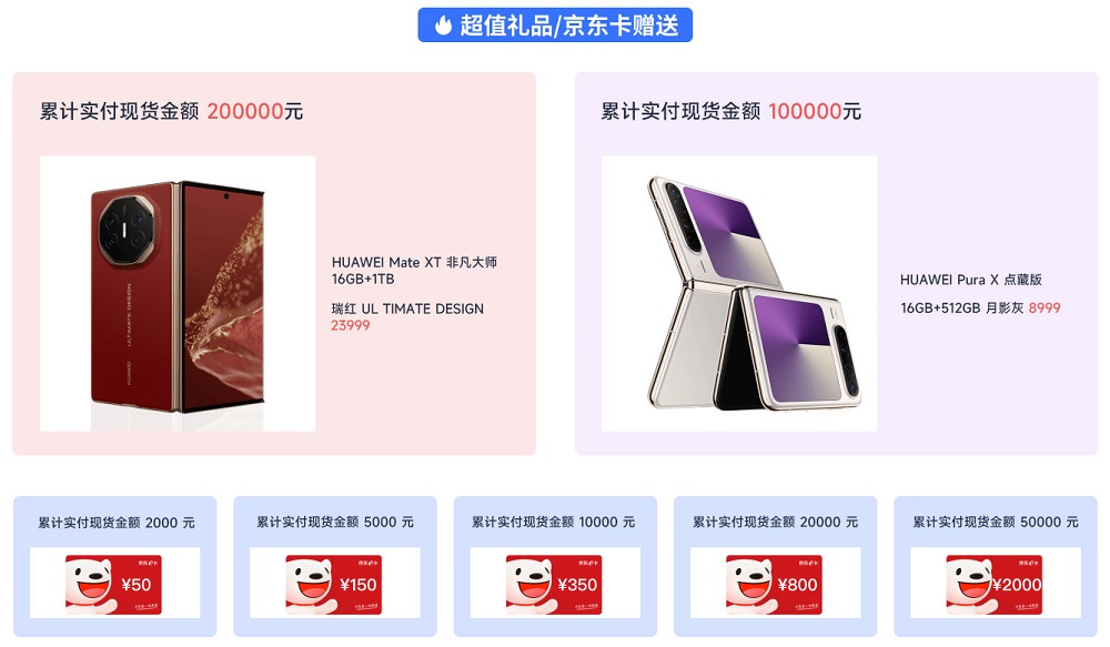 除了满减优惠外,还将享受满额赠福利。在正式活动期间,用户支付现货元器件订单,即可参与全场满额赠礼活动:累计现货元器件支付金额(预订元器件不计入)达到图示门槛,即可获得相应礼包,HUAWEI折叠手机等丰厚大奖等您来领取!活动结束后统一发放。