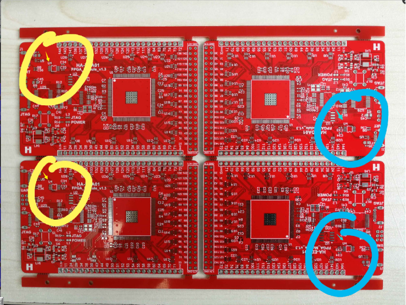 PCB打样成品板客户反馈在PCB原文件拼板发现个别字符U4元件位号无法改变方向。