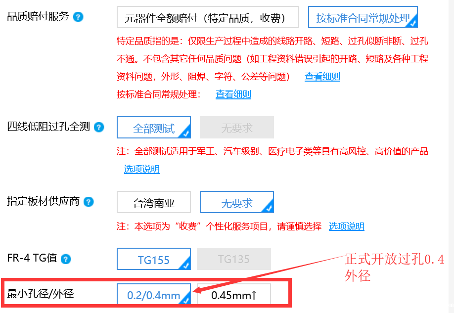 5:2019年9月1号 yyzx18又迈出重要的一步,正式开放高难度加工工艺:0.4的过孔外径,0.2的内径 加工优米体育中心官网首页登录开放,又给大家了一个新的选择