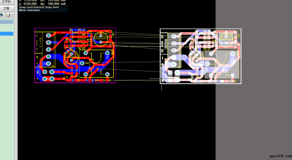 今天具体来说说在线路板打样的时候,阴阳板拼板方法。其实就是将所画的PCB图的TOP层变为BOTTOM层,BOTTOM层变为TOP层进行拼板。