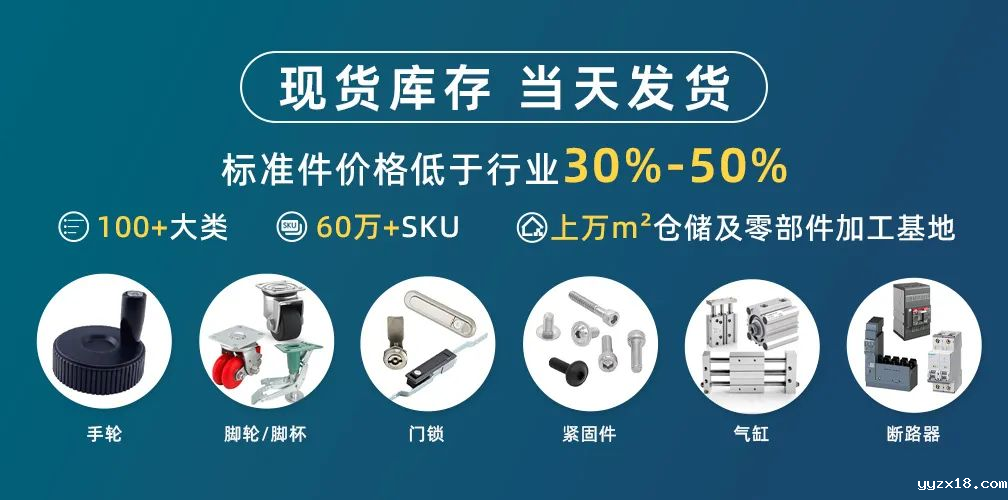 标准件产品价格低于行业30%~50%,100+大类,60万+SKU,上万m²仓储及零部件加工基地,现货库存,当天可发货。