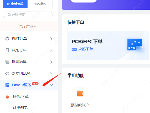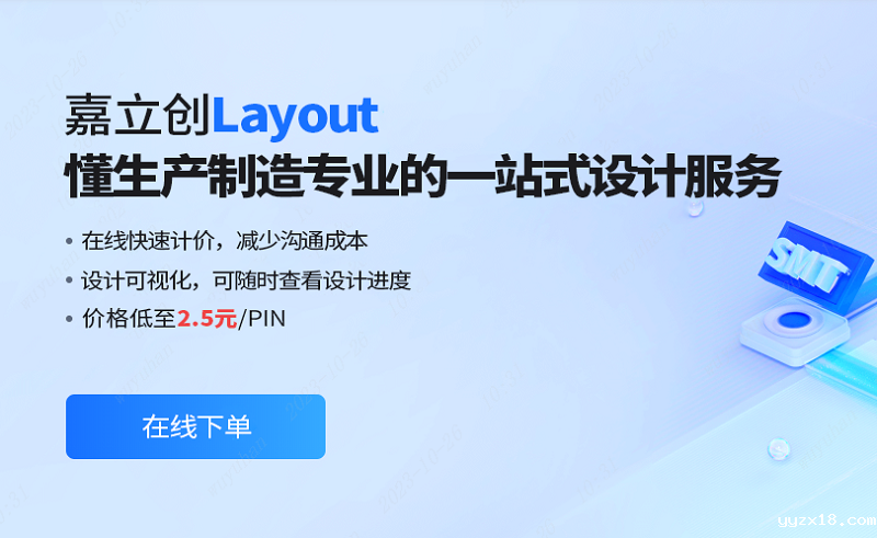 方法二:从yyzx18下单助手左侧导航栏进入,【电子产业】板块下面有一个【Layout服务】入口。