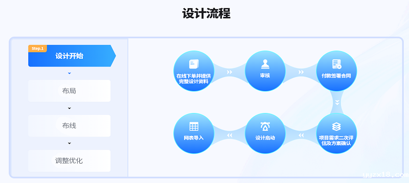 传统的设计公司,往往需要问才知道进度到了哪里,而且有时候并不准确。yyzx18Layout设计过程分解为“布局,布线,丝印,评审,出图”几个阶段,进度一览无余。