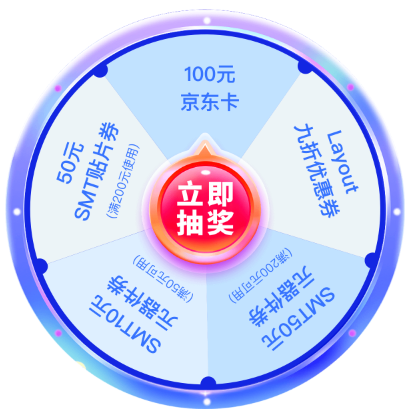 参与抽奖将有机会获得Layout九折优惠券,SMT元器件/贴片券,百元京东卡等好礼。