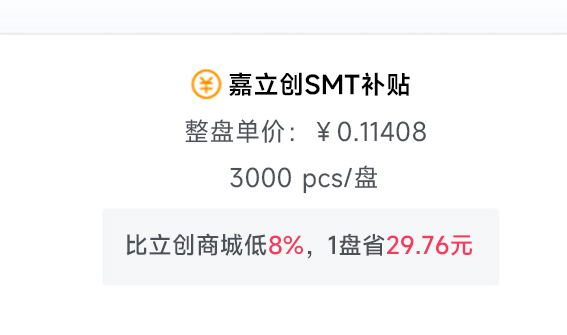 这个活动一直有。在 购买元器件作为私有库, SMT做了补贴,可以享受高达8%的折扣,并且每盘都有300元换料费券。