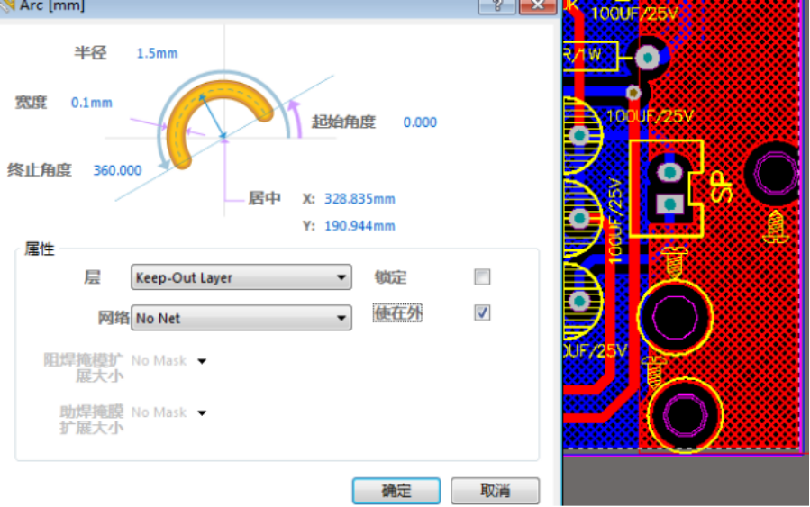 2. 双击不需要成形的线或圈(形状)如下图把KEEP-OUT(使在外)勾选择就 起到禁止作用,勾选后将不会作为成形开孔用。