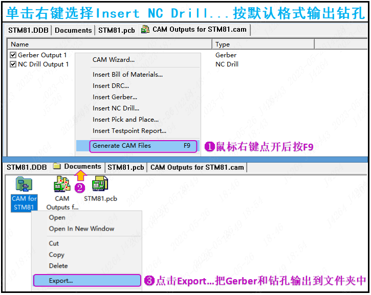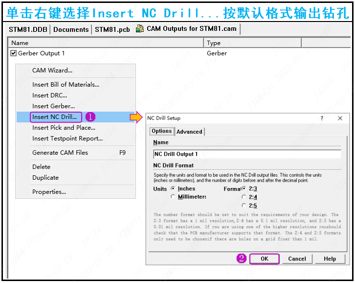 四、输出钻孔:在输出Gerber菜单中右键选择Insert NC Drill...输出钻孔