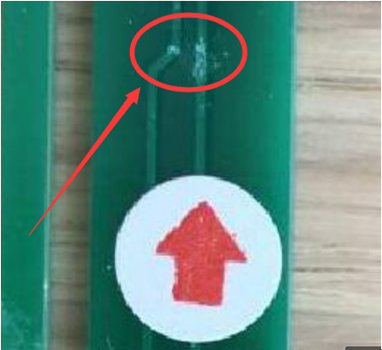 4)肉眼观查下不接受绿油修补的划痕;