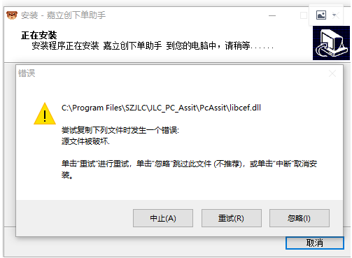 ②:更新下载的安装包提示解压报错