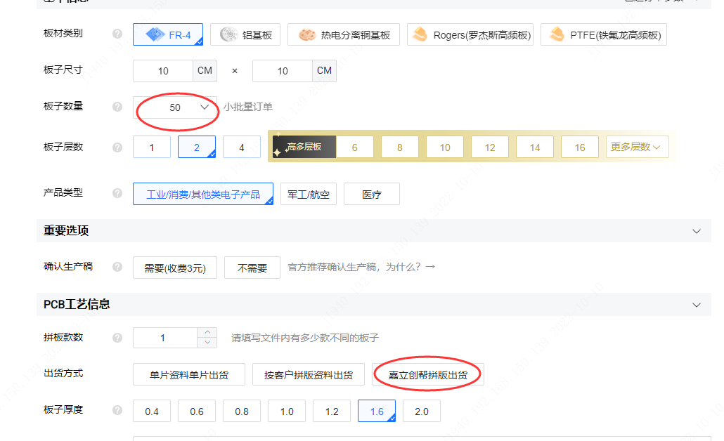 1、PCB 下单数量在≥50套(小板)的时候,可以选 帮拼版。
