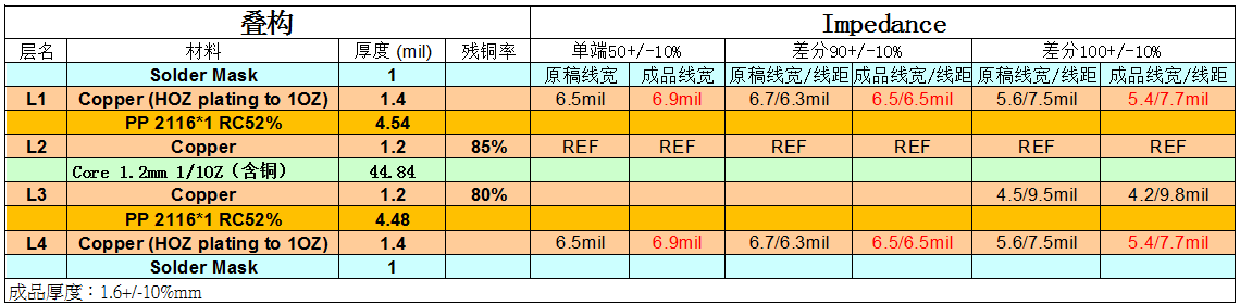 压合理论厚度=外层压合铜箔厚度+上下PP压合后厚度+内层芯板厚度