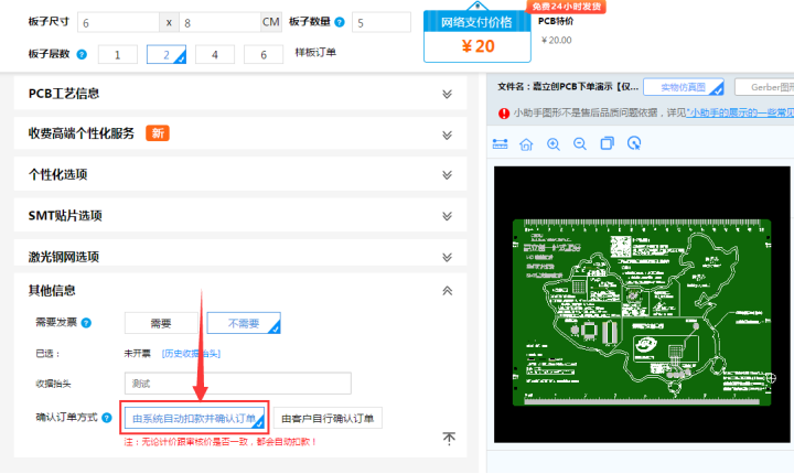 (2)下单时选择的是:由系统直接扣款并确认订单