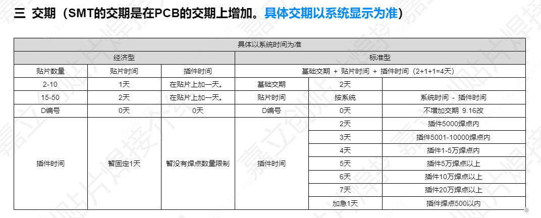 SMT交期如下图: