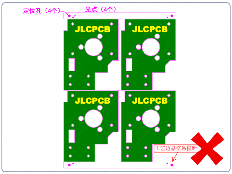 (2)客户自行拼板的,一定要保证拼板规范,间隙统一,需要光点和定位孔的请拼板时添加好。