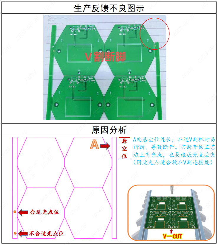 设计优化:V割板边悬空位过长易断