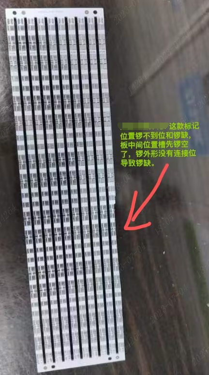 其它情况:此类长条形板,不管是普锣还是精锣,也会出现锣板不良的情况(需要每间隙一定宽度加连接位固定)