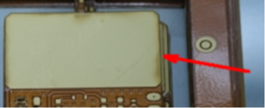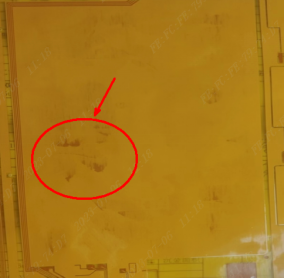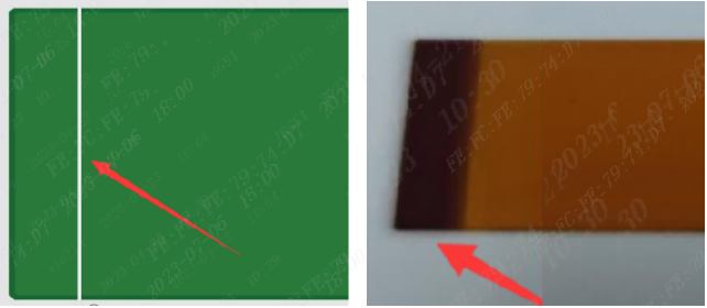 (1)大铜面氧化:因设计的是大铜面,压覆膜时空气很难排掉,空气中的湿气与铜面在高温高压下产生氧化反应,导致外观不良,但不影响功能,为避免名这种问题,建议设计成网格铜皮,或在大铜面上增加阻焊开窗