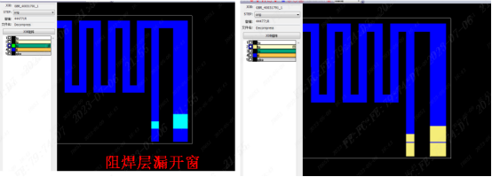 (3)补强开口设计:是指补强要避开下方的元器件孔或焊盘,最好是客户自己设计好,我司一般默认按避开焊盘0.3mm来处理,如果掏开补强后,剩下的补强宽度不够2mm的,我们会直接拉通(即这一整块区域都没有补强),注意此点我们不会提出问客单,有特殊要求要提出来。