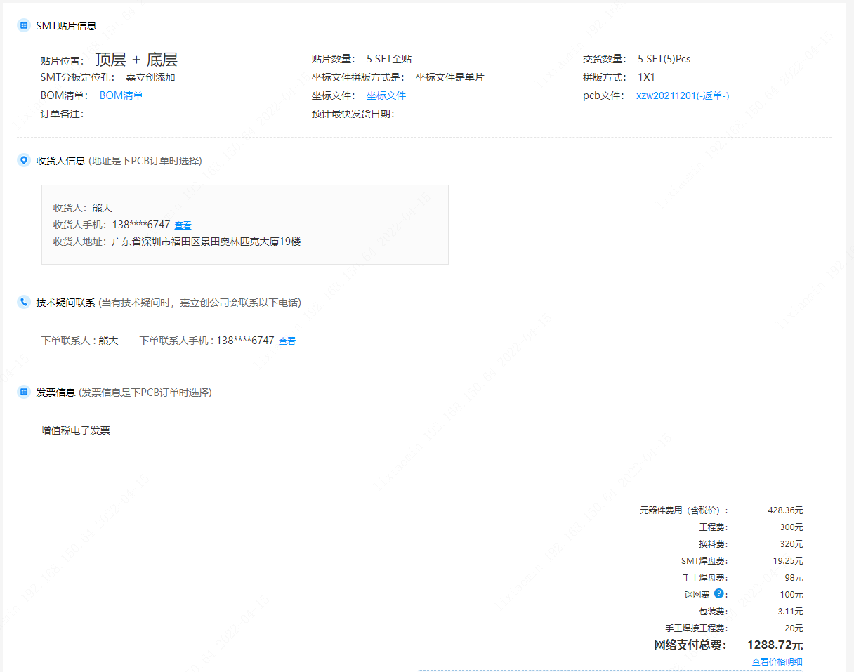 2.而后会直接跳转到SMT提交订单的界面,提交订单后即可付款。