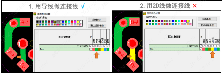 3)在"设置"-"显示颜色"中,可以查看层列表,一定要避免用2D线设计连通导线,避免输出GERBER时2D线没有输出而导致线路断开